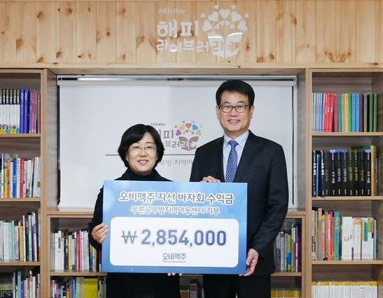 [토요경제=조은지 기자] 오비맥주는 본사 임직원 자선장터를 통해 마련한 수익금 전액을 ‘해피 라이브러리’ 1호인 서울 영등포구 ‘푸른공부방지역아동센터’에 지난 25일 전달했다고 밝혔다.