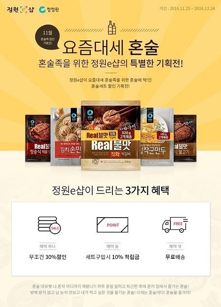 대상의 통합 온라인몰 정원e샵은 혼술족을 위한 ‘혼술세트 할인 기획전’을 마련했다.