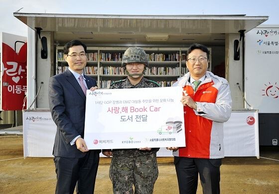 BC카드와 교보문고의 기증 도서는 파주 1사단 내 8개 소초 도서관과 대성동 마을 기가사랑방에 전달됐다.