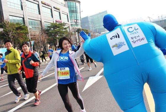 임직원 10여명은 대선주조의 마스코트 캐릭터인 ‘버블맨’ 복장으로 참가자들을 응원해 대회에 즐거움을 더했다.