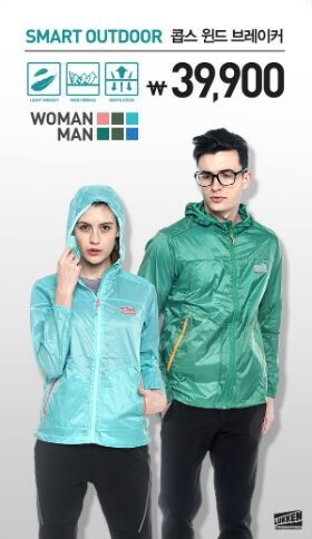 이랜드 루켄의 ‘콥스 윈드브레이커’는 저데니어 소재의 사용으로 방풍기능을 강화한 후드형 자켓과 매쉬소재 원단을 사용해 통기성을 높인 집업형 자켓 등 남녀 각각 2종류 스타일로 출시되며 가격은 3만9900원으로 동일하다.