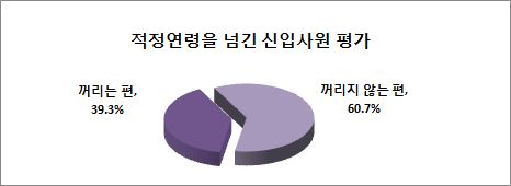 온라인 취업포털 사람인이 12일 기업 511개사를 대상으로 ‘적정연령을 넘긴 신입사원 평가’에 대해 조사한 결과 39.3%가 ‘신입사원 채용 시 적정연령을 넘긴 지원자는 꺼리는 편’이라고 답했다.