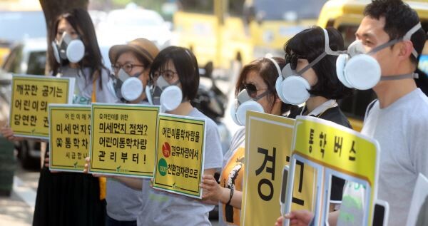 ▲ 지난달 18일 환경정의 회원들이 서울 중계동 학원가에서 '어린이 건강을 위한 미세먼지 저감 캠페인'을 하고 있다. <사진=연합>