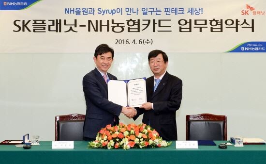 [토요경제신문=박성우 기자] NH농협카드는 지난 6일 SK플래닛과 ‘NH올원 시럽카드’ 출시와 빅데이터·핀테크 등 신사업 개발을 위한 전략적 업무 협약을 체결했다고 7일 밝혔다.