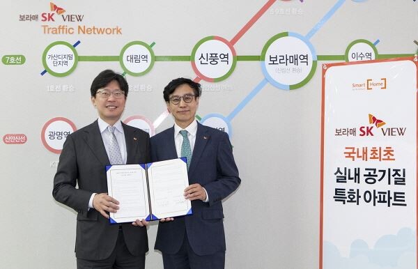 양사는 우선 최근 분양이 완료된 ‘보라매 SK VIEW(SK 뷰)’의 환기 시스템과 ‘스마트홈 에어케어’ 서비스 연동키로 했으며 다음달 분양 예정인 ‘공덕 SK뷰’에는 미세먼지와 이산화탄소, 유해가스 등을 종합적으로 분석하는 공기질 센서를 전 세대에 기본 설치할 계획이다.