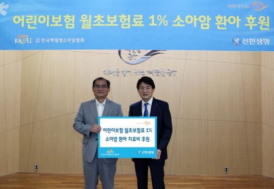 [토요경제=이경화 기자] 신한생명은 서울 중구 본점 대강당에서 백혈병·소아암 환아 치료비 후원금을 한국백혈병소아암협회에 전달했다고 9일 밝혔다.