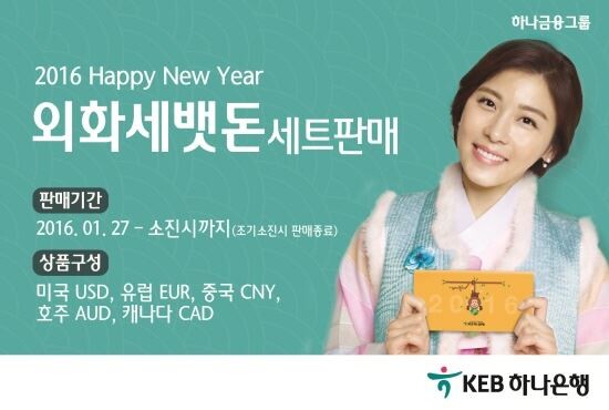 [토요경제신문=김재화 기자] KEB하나은행은 27일 설맞이 외국통화 세뱃돈 세트를 선착순 판매한다고 밝혔다.