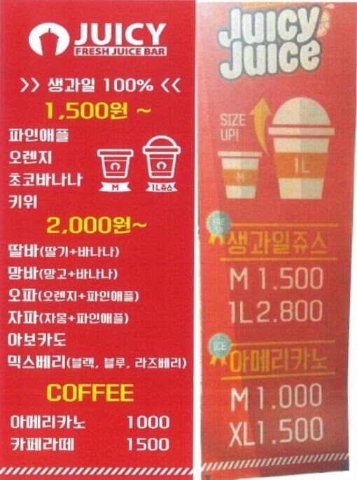 공정위에 따르면 쥬씨는 각 가맹점에 생과일 주스 메뉴판과 배너(막대 광고)를 공급하면서 2015년 5월 20일경부터 2016년 6월 24일까지 199개 가맹점 메뉴판과 배너에 ‘1L 생과일주스’를 표시‧광고 했다.
