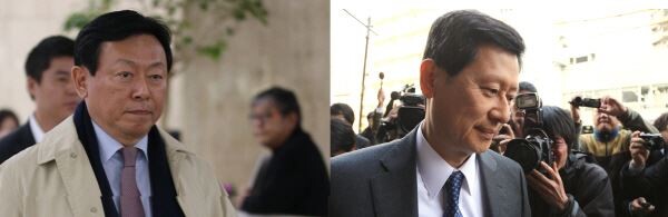 ▲ 신동빈 롯데그룹 회장(왼쪽)과 신동주 전 일본 롯데홀딩스 부회장. <사진=연합뉴스>