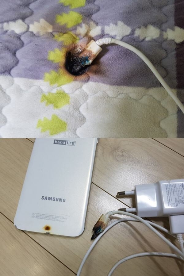 이어 “침대 위 충전 중이던 휴대폰에서 연기가 나고 휴대폰은 불에 달군 쇠처럼 뜨거웠다”며 “폰 주변은 검게 타서 이불 두 장, 베게가 다 구멍이 난 상태였다”고 전했다.