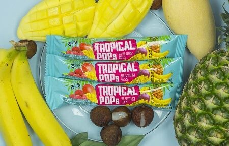 해태제과는 열대과일 파인애플과 바나나, 망고, 파인애플 등을 더한 아이스바 ‘트로피칼 팝스’를 출시했다. 열대과일을 섞은 혼합음료를 아이스바로 구현한 제품으로 이국적인 맛을 살린 것이 특징이다.