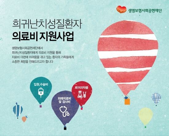 [토요경제신문=김재화 기자] 생명보험사회공헌재단은 올해 전국 69개 대형병원과 희귀난치성질환자를 위한 의료비 지원사업을 통해 12억원의 의료비를 지원할 계획이라고 3일 밝혔다.