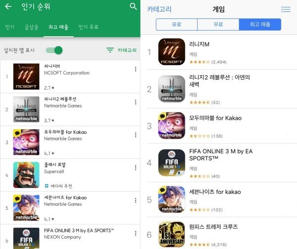 23일 엔씨소프트에 따르면 ‘리니지M’은 출시 2일 만에 양대 오픈마켓의 최고 매출 순위에 1위로 올라섰다. 애플 앱스토어에서는 출시 당일 7시간만에 최고 매출 및 인기순위에서 1위를 기록했다.