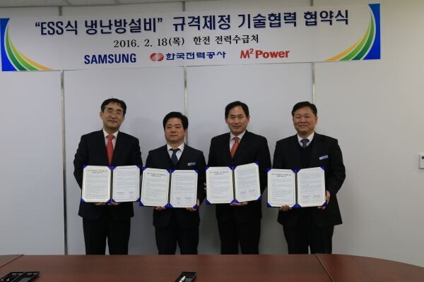 한국전력은 지난 18일 전남 나주 본사에서 삼성전자, 엠투파워와 전력수요관리 신규기기로 개발 추진 중인 ‘ESS식 냉난방설비’의 규격제정을 위한 기술협력 협약을 체결했다고 19일 밝혔다.