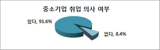 지난해 중소기업 취업 의사가 있었다는 응답(79.4%)보다 12.2%p 증가한 수준이다.