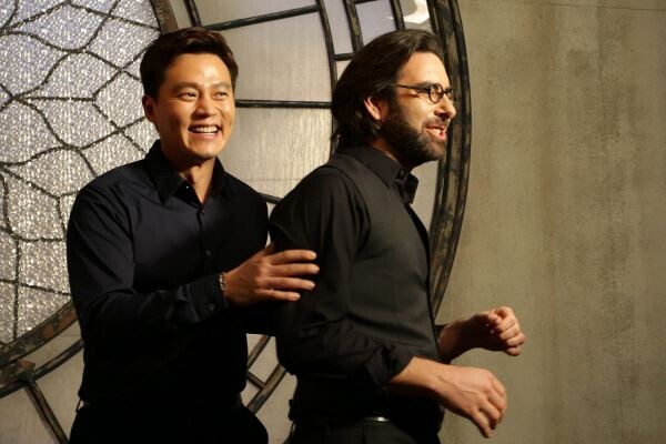 ▲ 코카콜라는 23일 배우 이서진의 ‘조지아 고티카’ TV광고 촬영 현장을 공개했다. 사진은 이서진과 커피박사 션 스테이만(오른쪽)이 촬영 중간에 웃고 있는 모습. <사진=코카콜라>