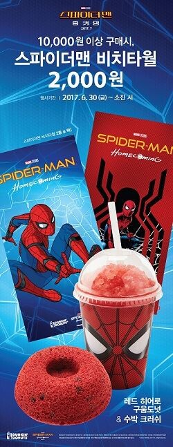 던킨도너츠 관계자는 “인기 히어로 영화 ‘스파이더맨 홈커핑’ 영화 개봉을 앞두고 캐릭터와 제휴한 굿즈와 도넛, 음료를 선보이게 됐다”며 “던킨도너츠에서 맛있는 도넛, 시원한 음료를 즐기며 휴가용품도 미리 준비하시길 바란다”고 말했다.