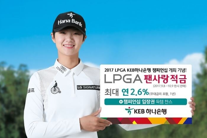 [토요경제=유승열 기자] KEB하나은행은 오는 10월 12일 개최 예정인 '2017 LPGA KEB하나은행 챔피언십 대회'를 기념해 내달 9일까지 'LPGA 팬사랑 적금'을 한시 판매한다고 12일 밝혔다.