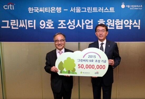 [토요경제신문=김재화 기자] 한국씨티은행이 서울그린트러스트와 ‘그린씨티(Green Citi)’ 조성에 나섰다.