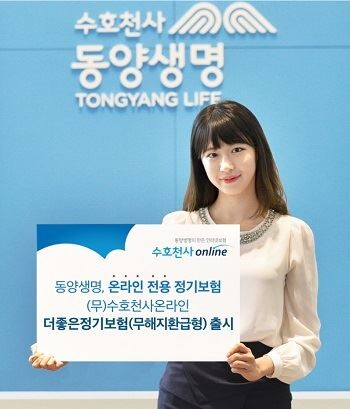 동양생명은 30일 '수호천사온라인더좋은정기보험(무해지환급형)'을 출시했다고 밝혔다. 이 상품은 무해지환급형과 순수보장형으로 구성됐다. 무해지환급형은 보험료 납입 기간중 계약을 해지하는 경우 해지환급금이 없는 대신 순수보장형 대비 보험료가 최대 26.3% 정도 저렴하다.