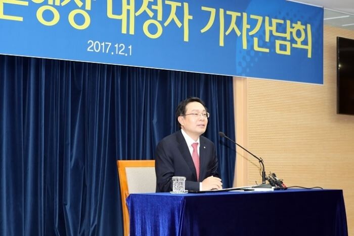 경영 계획에 대해서는 "가계대출은 어려울 것으로 보이기 때문에 내년에는 중소기업대출을 많이 늘려 은행이나 국가, 중소기업에 도움이 되도록 하겠다"며 "가급적 중소부분을 늘려 우리 경제에 도움되도록 할 것"이라고 강조했다.
