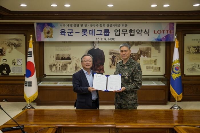 이번 협약에서 롯데는 전역했거나 전역을 준비 중인 단기 및 중·장기복무 장병의 취업을 지원하는 동시에 군임무 수행 중 발생한 전‧공상자 및 순직자 유가족에 대한 특별채용을 지원하기로 했다.