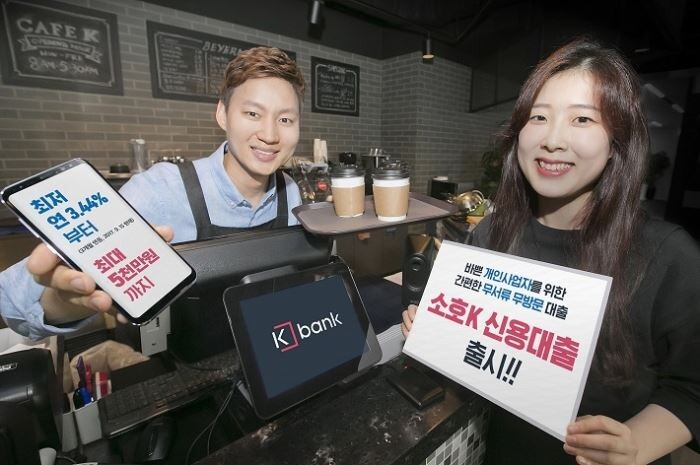케이뱅크는 지난 4월 오픈과 동시에 직장인K 신용대출과 미니K 마이너스통장, 슬림K 중금리대출을 함께 출시한 바 있다. 이후 개인사업자 전용대출에 대한 고객 수요가 높아짐에 따라 개인사업자를 위한 '소호K 신용대출'을 출시하며 여신상품 라인업을 확대했다.