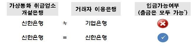 이에 따르면 가상화폐 거래소 이용자가 입금하기 위해서는 거래소가 거래하는 은행과 같은 은행에 계좌를 개설해야 한다.