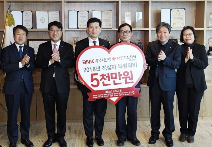 BNK금융지주는 2007년부터 매년 대한적십자사에 특별성금을 전하고 있다. 올해에는 부산은행 6400만원, 경남은행 4500만원, 기타 계열사 100만원 등 총 1억1000만원의 특별성금을 출연해 대한적십자사에 기부할 예정이다.