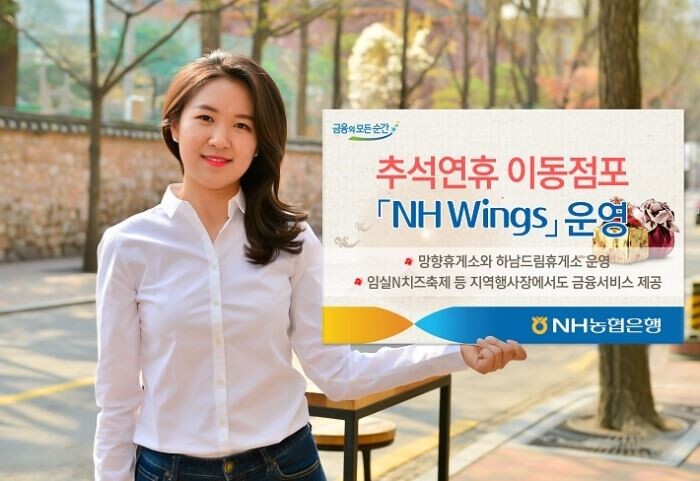 농협은행의 이동점포인 'NH Wings'는 금융단말기와 자동화기기를 탑재한 차량으로 휴게소 및 축제현장 등을 돌아다니며 신권 교환은 물론 현금입출금, 통장정리, 계좌이체 등 각종 금융서비스를 제공하고 있다.