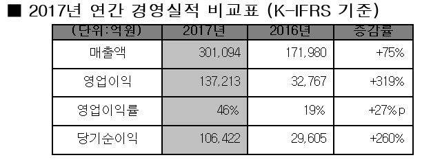 또한 작년 4분기에는 매출액 9조276억원, 영업이익 4조4658억원, 순이익 3조2195억원을 기록하며 분기별 기준으로 봐도 전 부문에 걸쳐 사상 최대의 실적을 경신하는 호조세를 보였다.