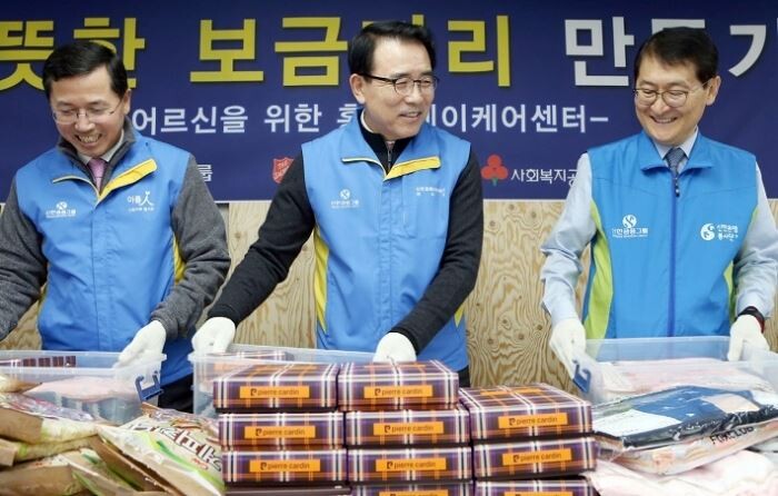 또 조 회장을 비롯 그룹사 CEO와 임직원 50여명은 어르신들을 위한 방한모자, 넥워머, 내복, 귀마개 등이 담긴 방한키트 600개를 제작하는 봉사활동에 참여했다.