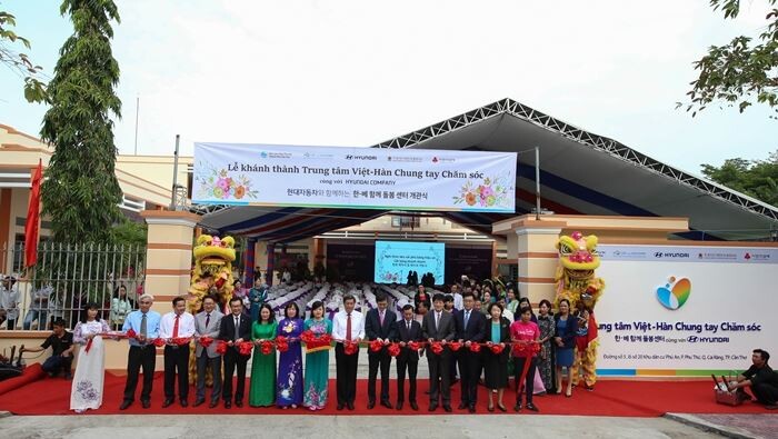 현대차는 25일 베트남 껀터시 까이랑에서 주호치민 대한민국 총영사관·재외동포재단·베트남 여성연맹·껀터시 인민위원회·유엔인권정책센터를 비롯해 현대차 관계자와 현대차 글로벌 청년봉사단원 등 약 400여명이 참석한 가운데 ‘한-베 함께돌봄센터’ 개관식을 진행했다고 밝혔다.