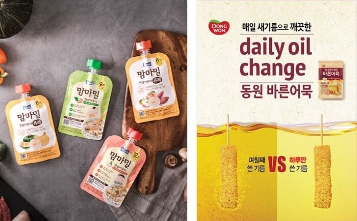 동원F&B의 동원 바른어묵은 어묵의 안전성과 믿음을 높이기 위해 매일 깨끗한 새 기름으로 만들고 있다. 최근에는 핵심 가치인 매일 새로운 기름을 강조하는 TV CF를 공개했다. 동원 바른어묵은 고온에서 짧은 시간 튀겨내 신선하고 맛이 깔끔하며 일반적으로 사용하는 대두유가 아닌 카놀라유로 만들어 더욱 건강하다는 게 업체 측 설명이다.