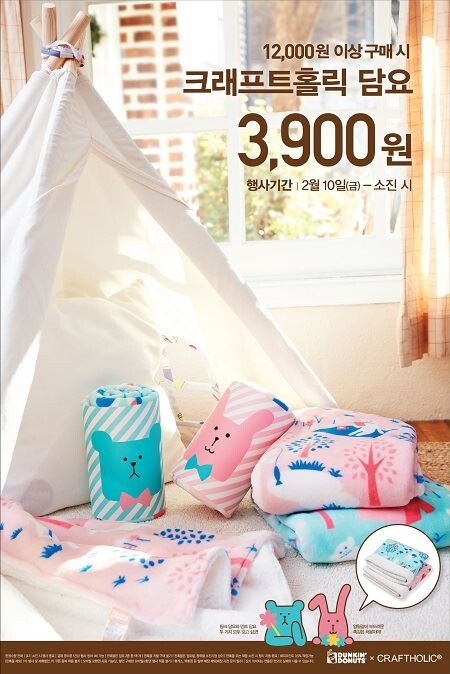 던킨도너츠 관계자는 “다가올 꽃샘추위를 대비해 지난 해 큰 인기를 끌었던 크래프트홀릭 캐릭터를 활용한 담요를 선보이게 됐다”며 “맛있는 도넛, 커피와 함께 포근한 크래프트홀릭 담요도 만나보시길 바란다”고 전했다.