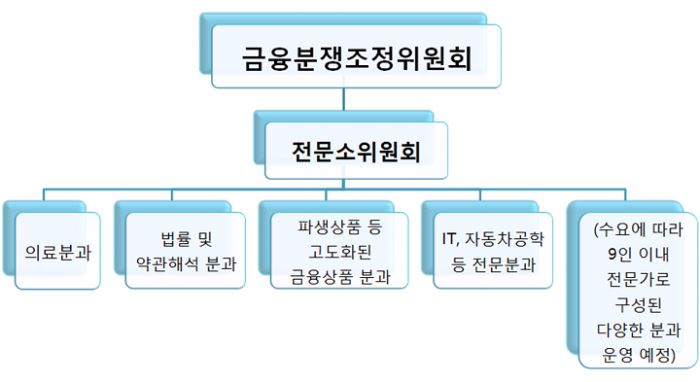 우선 분조위 아래 전문소위를 둔다. 의료, 법률, 약관 해석, 파생상품, 자동차공학, 정보기술(IT) 등 깊이 있고 전문적인 검토가 필요한 사안을 위해서다.