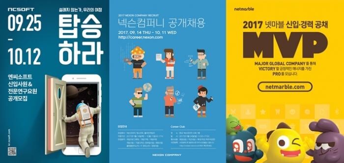 25일 업계에 따르면 엔씨소프트와 넥슨, 넷마블게임즈 등은 다음달 중순까지 신입·경력사원 공개 모집한다.
