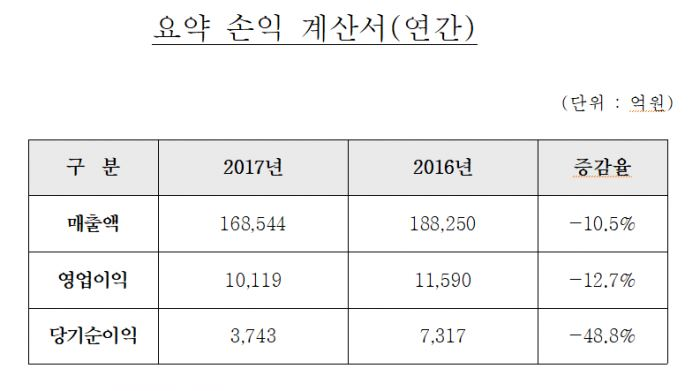 회사 관계자는 “원화 강세로 달러/원 환율 급락에 따른 외환 평가손실 부분이 반영돼 당기순익이 전년대비 감소했으나 영업이익률은 6%대로 양호한 흐름을 이어가고 있다”고 설명했다.