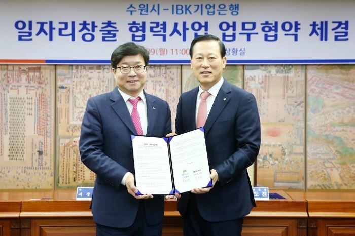 [토요경제=유승열 기자] IBK기업은행은 정부의 일자리 창출 정책에 발맞춰 수원시와 '일자리창출 업무협약'을 체결했다고 29일 밝혔다.