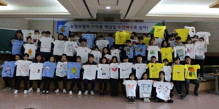 [토요경제=정종진 기자] NH농협생명보험과 NH농협손해보험은 지난 29일 농협보험교육원에서 신입직원들이 기후난민 어린이를 위한 손싸개와 티셔츠를 제작하는 봉사활동을 가졌다고 30일 밝혔다.