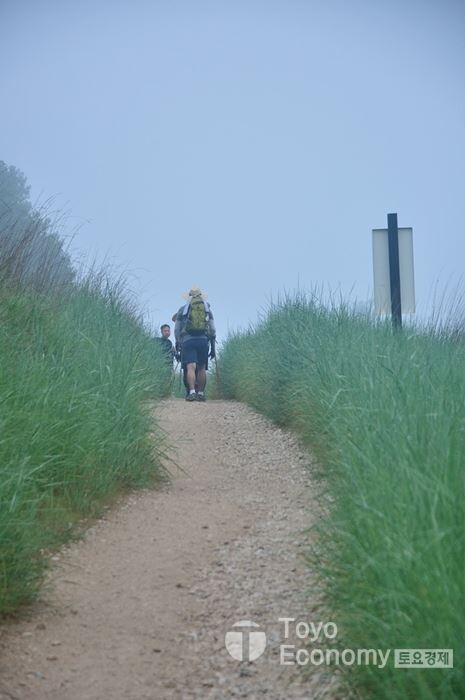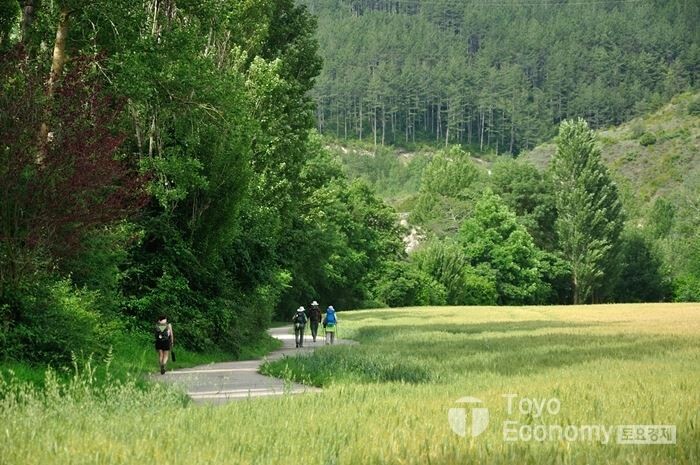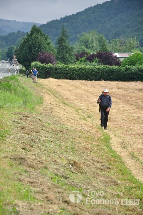 완연하게 산지를 벗어났기에 순례길은 넓고 편했다. 포장길보다 비포장길이라 흙먼지가 날리기도 하지만 발은 편하다는것을 수없이 많이 걸어본 경험으로 알 수 있다. 그러다보니 우리들의 걷는 속도는 더욱 차이가 생겨 앞뒤로 제법 벌어졌다. 누구를 맞춰 걷는것이 점점 어려웠다.