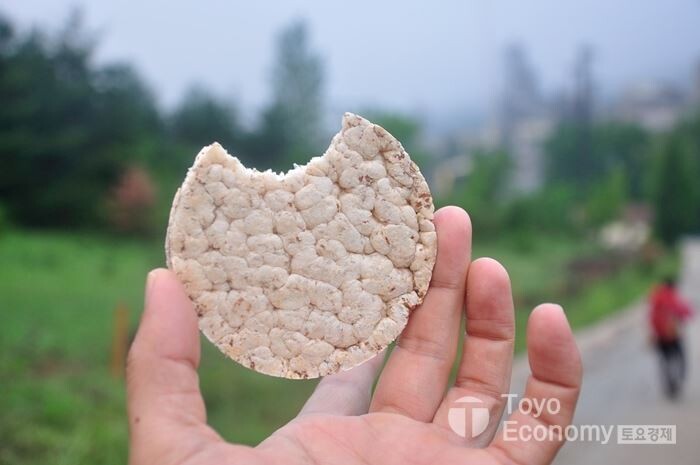 타박타박 걷고 있는 동안 일행 중에 '테스'라는 닉네임을 사용하는 분이 어제저녁 식료품점에서 샀다는 뻥튀기과자 비슷한것을 내어 주신다. 아침대신 먹어보라고... 달콤한 딸기향이 베어있는 뻥튀기과자가 상쾌한 아침 기분을 돋구워 주었다.