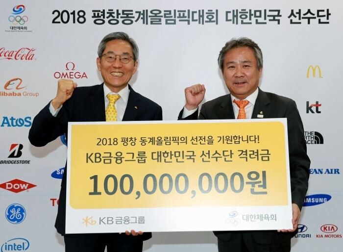 [토요경제=유승열 기자] KB금융지주는 29일 대한체육회를 방문해 2018 평창 동계올림픽에 출전하는 대한민국 국가대표 선수단에 1억원의 격려금을 전달했다고 30일 밝혔다.
