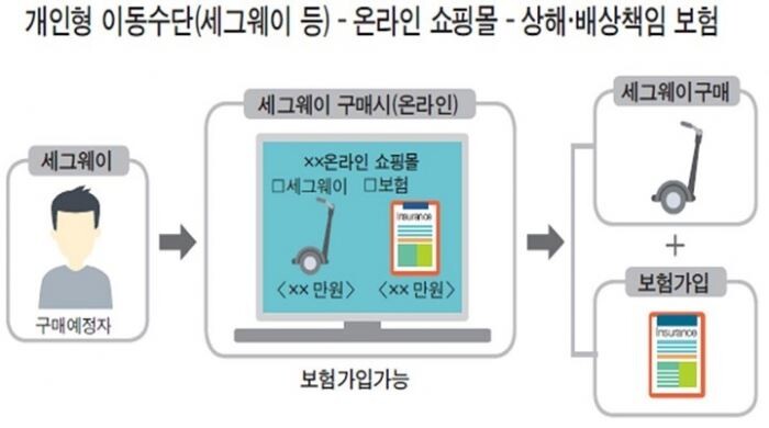 그러나 앞으로는 A씨처럼 보험상품을 찾아볼 필요 없이 제품 매장이나 인터넷에서 개인용 이동수단을 구입할 때 관련 보험상품을 안내받고 가입까지 할 수 있게 된다.
