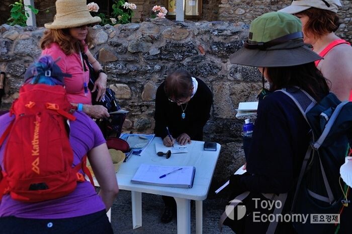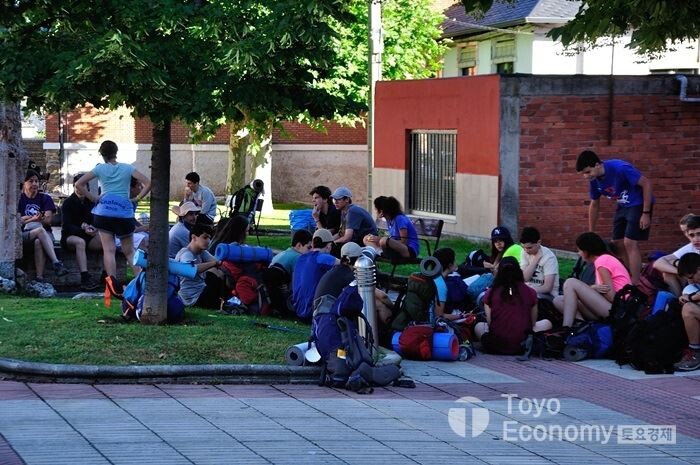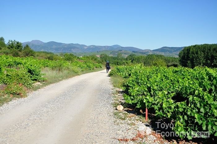 지나가는 순례자들에게 포도주를 나누어 줬다니 비니꼴라협회(Cooperativa Vinicola)가 있는 Camponaraya에 들어서면서 단체로 순례길을 걷는 학생들이 보이기 시작했다. 그전에는 잘 보이지 않았는데 갑작스럽게 나타난 무리들이다. 나름 조용하던 순례길이 북적거리고 젊은 학생들의 수다소리가 길을 메우고 있다. 처음에는 당황스러웠지만 며칠 지나면서 당연한 풍경으로 바뀌었다. 그리고 바뀐 풍경 중 다른 하나는 밀밭이 사라지고 다시 포도밭이 펼쳐져 있다는 점이다.