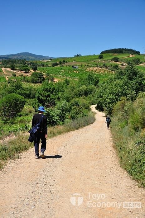 메세타평원처럼 단순하고 평이한 모습은 사라지고 산과 언덕, 들판, 그리고 작은 도심을 잇는 순례길로 바뀌어 풍경을 바라보며 걷는 재미가 쏠쏠하다. 게다가 마을마다 작은 성당과 무덤의 모습들이 시선을 끌면서 발걸음을 더디게 한다. 폰페라다에 도착한 이후 한낮에는 기온이 치솟기 시작했다. 7월 여름이라는 것을 상기시키듯 뜨거운 기운이 오전 9시 부터 뿜어내기 시작했다. 그나마 곳곳에 마을과 숲길에 그늘이 있어 쉬어갈 틈이 있었지만 Cacabelos부터는 이마저도 없어 힘든 순례길이 되었다.