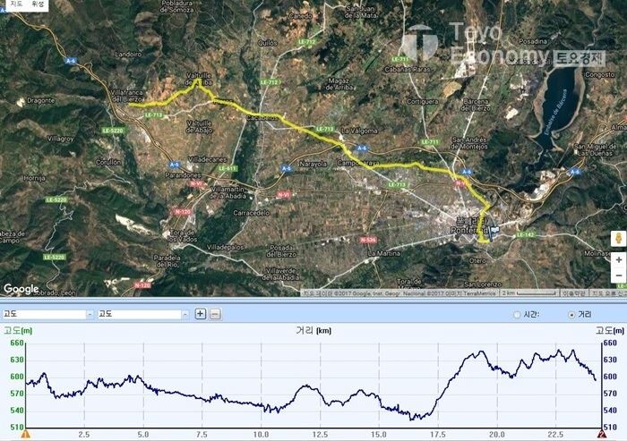 주요지점 Ponferrada ~ Camponaraya ~ Cacabelos ~ Valtuille de Arriba ~ Villafranca del Bierzo