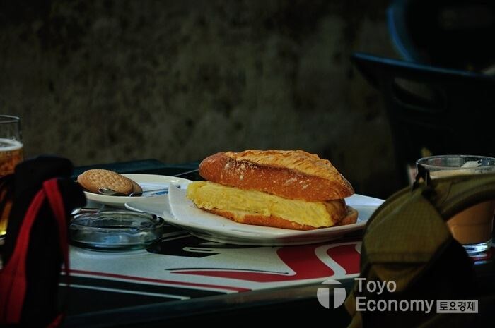 Cacabelos에 다다랐을때는 점심 무렵이었다. 지친 몸을 충전하기 위해 또 Bar를 찾아 들어가 시원한 음료와 점심식사로 두틈한 또띠야(Tortilla)가 들어간 보카디요를 주문했다. 그나마 짜지 않고 입맛에 맞는것은 Tortilla 뿐이다. 얼마나 쉬었는지 모르겠다. 뜨거운 햇빛이 두려워 밖에 나서서 걷는것이 괴롭게 느껴질 정도로 더운 날이다.