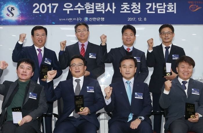 [토요경제=유승열 기자] 신한은행은 8일 서울 중구에 소재한 본점 신한심포니에서 '2017년 우수협력사'로 선정된 중소 협력사 대표를 초청해 감사패를 전달하고 현장의 건의사항 및 상생방안에 대해 소통하는 '우수협력사 초청 간담회'를 진행했다고 밝혔다.