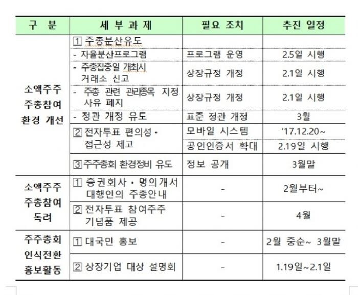 다만 TF는 개별 회사의 정관 개정이 필요한 만큼 단기적으로 주총을 3월 중으로 최대한 분산하는 방안을 추진하기로 했다.